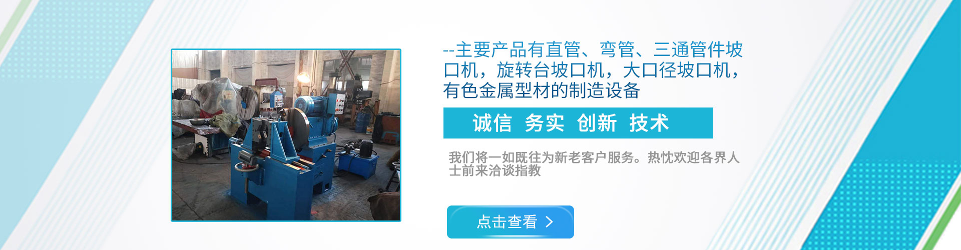 公司現(xiàn)下轄兩個分廠,一分廠主營電動管道坡口機(jī)和焊接設(shè)備,適用于造船、電力工程安裝、石油、化工、鍋爐廠、冶金以及鋼鐵行業(yè); 二分廠主營雙頭坡口機(jī),600mm直管坡口機(jī)和金屬型材擠壓生產(chǎn)線,適用于銅、鋁、鎂、鉛、鋅等有色金屬及其合金的加工。